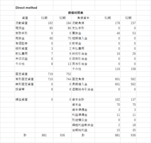 キャッシュフロー計算書直接法(貸借対照表)